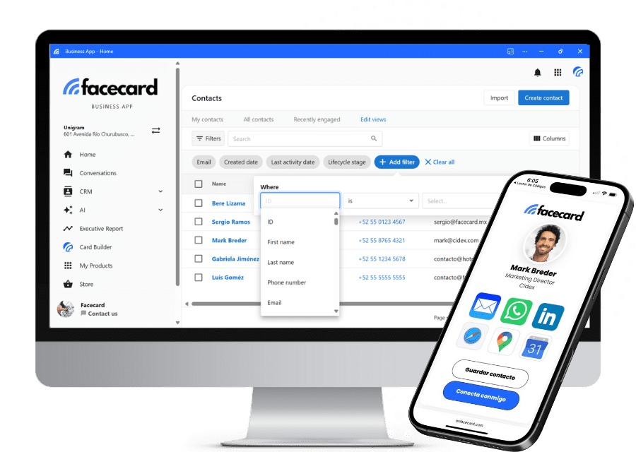 Facecard convierte interacciones cotidianas en relaciones duraderas y oportunidades reales, transformando contactos dispersos en una red activa, conectada y productiva.